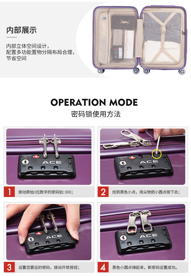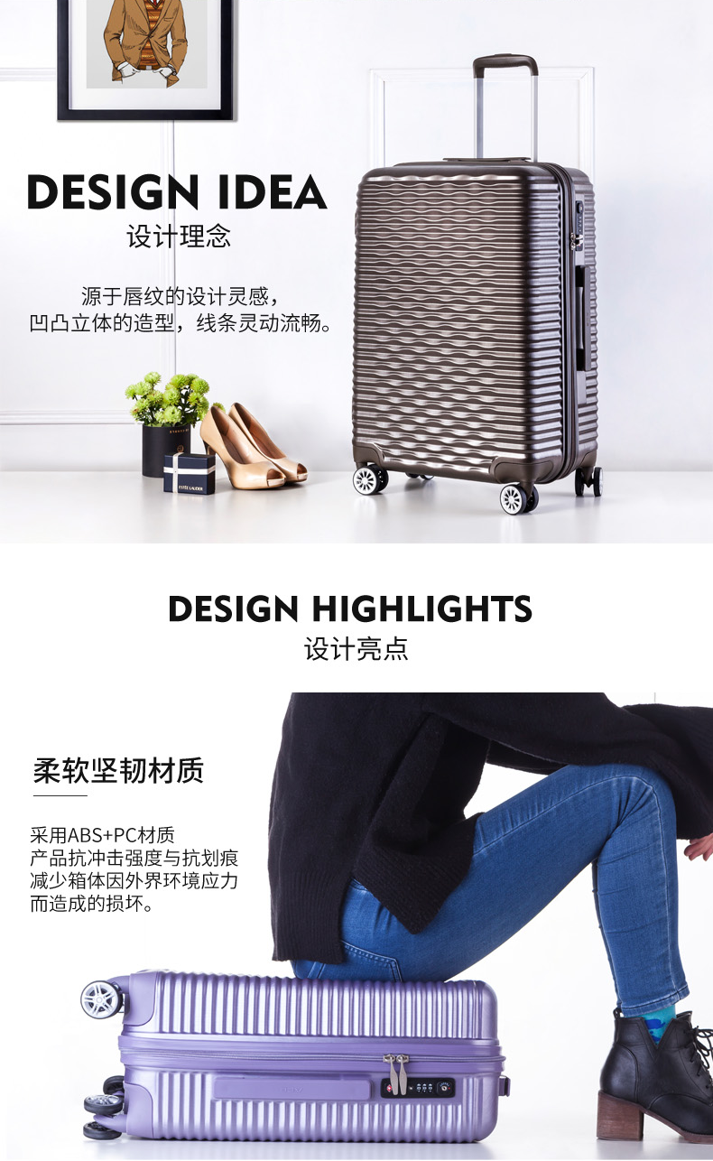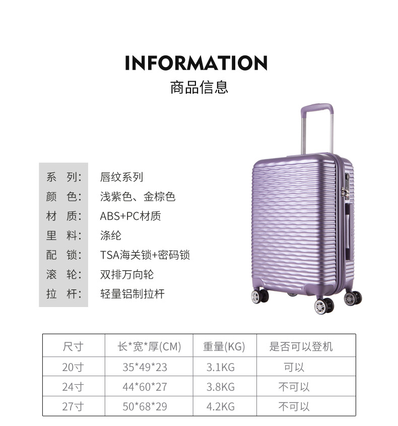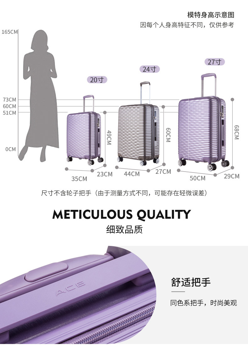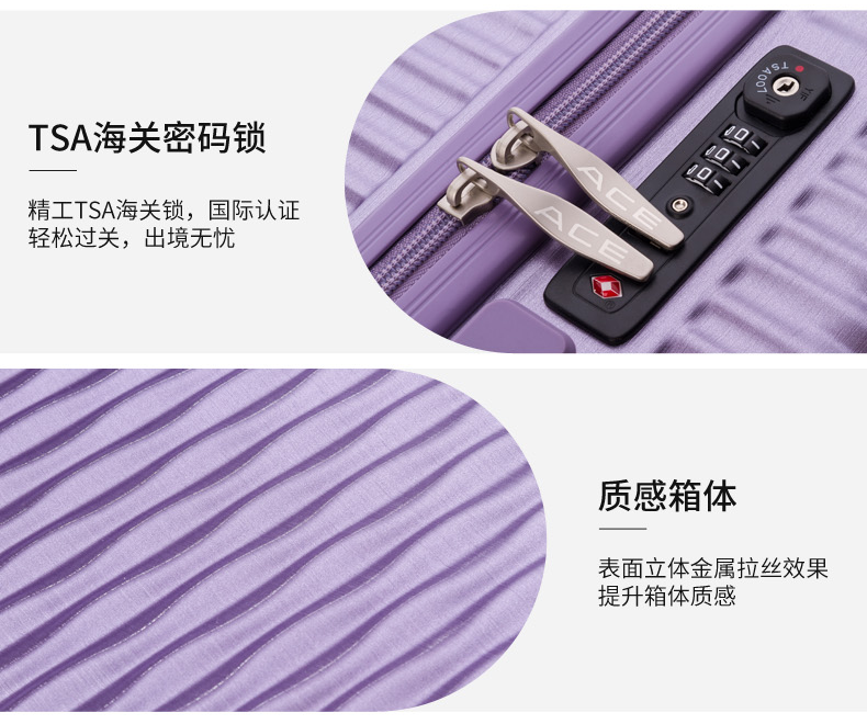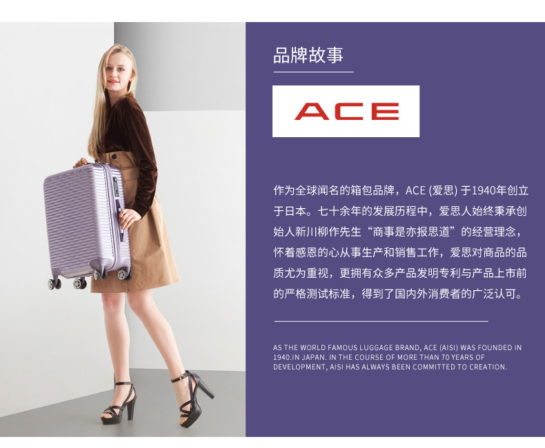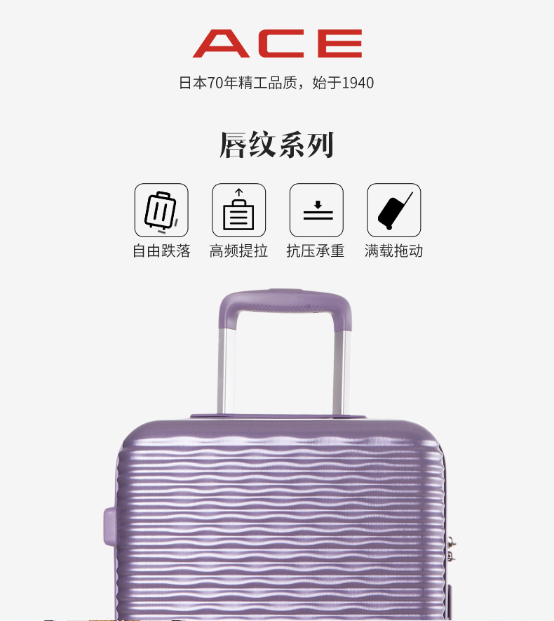 ACE日本爱思拉杆箱寸硬箱 双排万向轮旅行箱唇纹行李箱新品